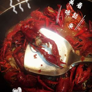 炒出姜蒜辣椒味后,加郫县豆瓣酱和海天黄豆酱翻炒,再加入沥水的小龙虾翻炒