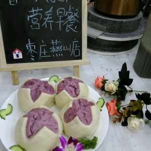 先用料理机加上牛奶、熟紫薯打成紫薯牛奶泥。然后在面粉中加入酵母丶紫薯牛奶泥、白糖和成紫面团。