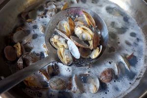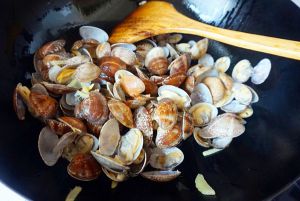 水开待花蛤张嘴立马关火,不要煮太久那样花蛤就会老掉口感发才了。