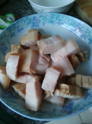 锅中放油加热,倒入五花肉及辅料,然后翻炒