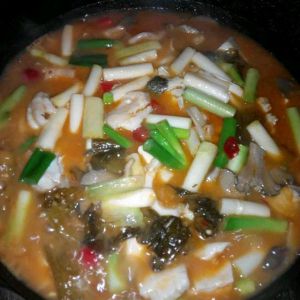 放入鱼头,鱼骨煮几分钟。最红放入鱼片。
