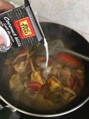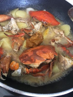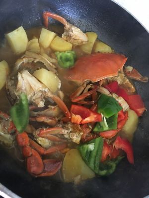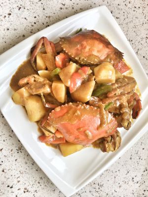 泰式咖喱蟹就完成了,装盘可以吃咯。肚子都编辑饿了…