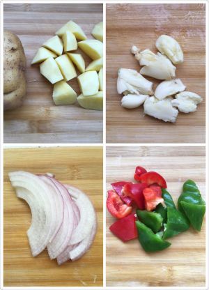 第三步:趁着锅里在蒸蟹的时间把素材都拿出来切好备用。