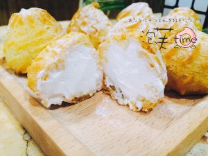 把金钻淡奶油打发,放冷藏柜冷藏半小时。金钻是含糖的植物性淡奶油,所以这个方子就没有加在淡奶油里的糖。如果想吃的更加健康,可以加动物性淡奶油。等泡芙完全冷却后,加入打发好的淡奶油即可。