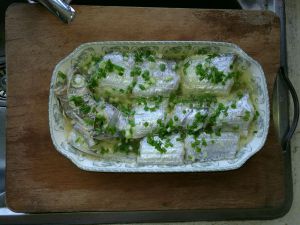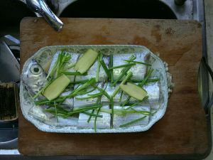 帶魚上撒之葱花,炼好的花椒油趁热泼之其上激香之。滋滋作响,回味悠長。