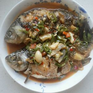 鲫鱼装盘,将剩下的汤汁生粉勾兑后淋上鱼身即可。
