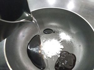 在烤制期间,可以制作酱料,将辅料放入锅里