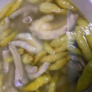 凤爪洗干净去掉指甲,水开后放入八角一颗花椒十几粒,生姜适量放入凤爪,放两勺料酒,煮13分钟,我这次用手机看的时间,13分钟刚好,肉不烂不硬,捞起来后用矿泉水充洗浸泡,我买了最便宜的大瓶冰露,提前放冰箱,冰水会让鸡爪更有弹性