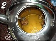 小茶壶里加入水,把罗汉果放进去,中火煮开;