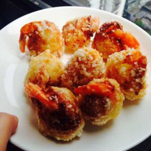 裹的顺序:蛋液-淀粉-蛋液-面包糠。
