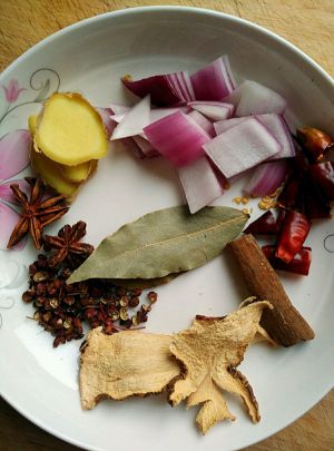 来个调料大合影,里面还缺罐装啤酒和火锅底料,最近老妈和蛋哥都不能吃太辣太麻的,所以香料放的比较少,如果喜欢很麻很辣的那就加倍放花椒和辣椒就OK了嘎嘎(*˘︶˘*).。.:*♡