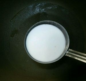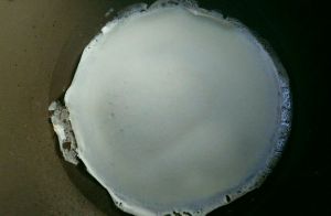 不沾锅烧热,中小火倒入一勺面粉水,摊均匀。