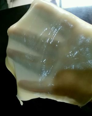 小火烙到面皮起泡,揭掉抹层油,依次烙好。下层有冰花吃哦…