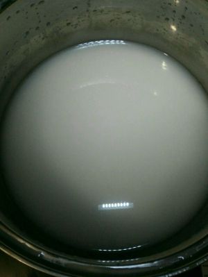 静置30分钟,洗面,反复揉,洗出的淀粉水倒入深些容器中,静置5个小时,倒掉上层清水,剩下的搅均匀。