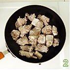 取锅,不用加油,将鸭块的鸭皮朝下放入锅内,用小火煸出鸭油。