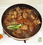 放入葱、姜、五香、桂皮,大火烧开,加盖,转小火焖1个小时。