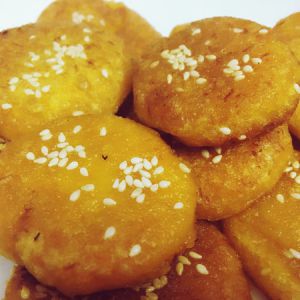 捏一块块,加入芝麻煎块即可,记得这个很容易糊,用小火耐心煎就可以了