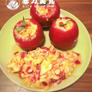 把蛋往挖空的西红柿里装