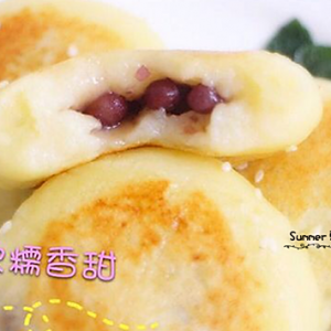 土豆泥加入糯米粉,糖粉,混合后揉成团,太粘的话可以增加适量糯米粉,