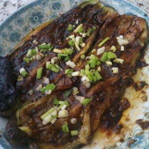 取出茄子,撒上葱花,大功告成。