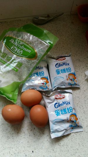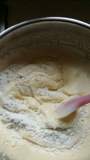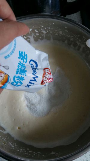 3将小彩娃蛋糕粉倒入以打发好的鸡蛋里