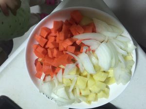 把土豆、洋葱、胡萝卜洗净,削皮,切小块备用.