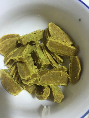 这时拿出3块咖喱,切小块备用.