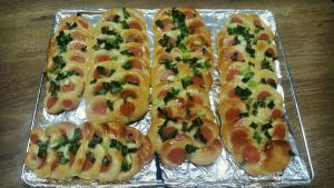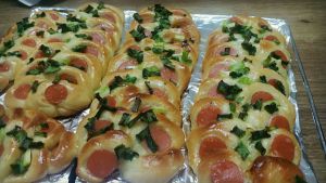 9.两头对折一下,捏紧接口处,摆在烤盘上开始二次发酵;