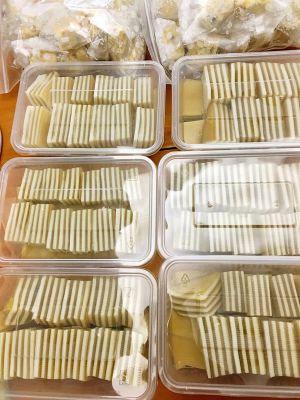 等涼了再切,如果香芝麻味更香更Q 放冰箱冰半小時再吃更正哦