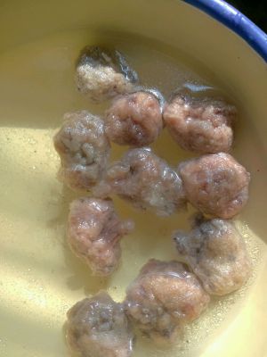 牛肉丸子用热水泡上