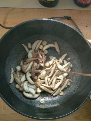 锅内热油 炒香菇