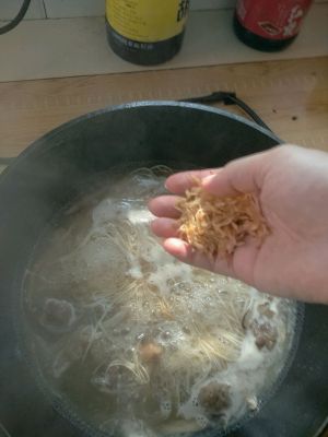 面条煮开放虾皮