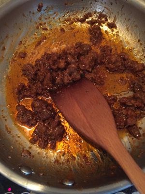 没有番茄了,番茄酱披萨草炒牛肉末,非常惊喜呢!
