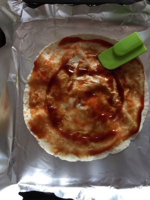 涂一层烧烤酱番茄酱,我不知道为什么国内吃披萨不吃烧烤酱,我觉得烧烤酱和番茄酱搭配薄饼pizza非常美味