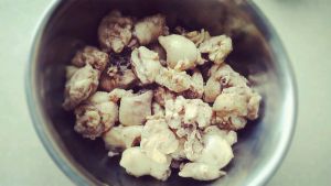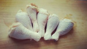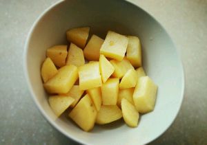 鸡腿切块,热水焯,去除沫子,捞出控干(控干净防炸锅)。