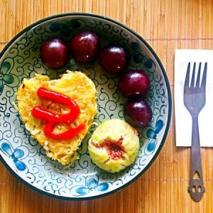 我用心形煎蛋器扣出的形状,也可以煎的时候直接倒入模具里。喏~不伦不类的早餐ok啦~加点番茄酱很美味哦~