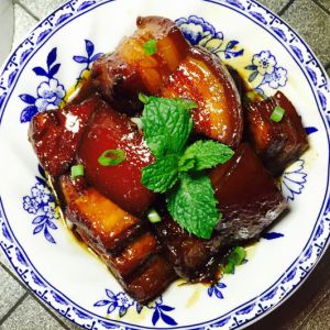 倒入炒好的五花肉块,与冰糖汁炒均匀上色,加点料酒,生抽,水(量多)