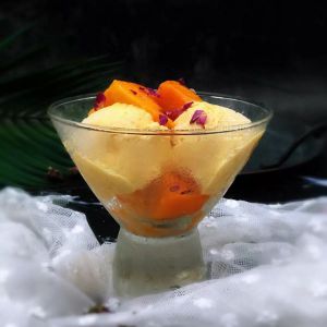 第二天从冷冻室取出,用冰淇淋勺,挖成冰淇淋球,再撒上少许新鲜芒果粒,自制的芒果冰淇淋就完成啦!
