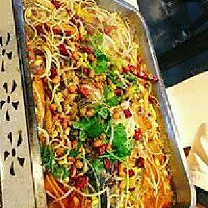先把鱼用火炉烤好,烤的时候放进调好的十三香,辣椒粉