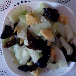 再倒入先炒好的鸡蛋,放料酒,糖,盐爆炒几下