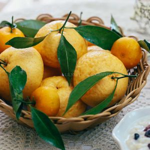 大火上汽后转小火蒸20分钟,焖3分钟出锅,插上真桔子蒂装饰。