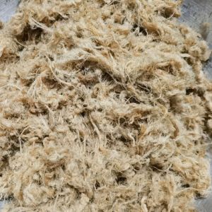 撕成细丝,越细越好,这一步是关键,撕的好可以出绒,我今天才剪了指甲,感觉撕的不够细。这一步真的很虐人,撕完后感觉肩膀和手都不是自己的了。还好宝宝和婆婆都来帮忙