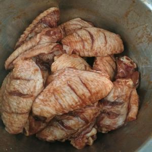 把所有材料放一起开始腌制,最少一个小时入味,有很多人都用清水和料我这里建议直接放鸡翅少许酱油做味道要比清水的好