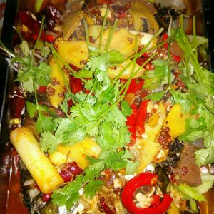 炒料,热锅凉油加入猪大油,葱姜蒜,花椒辣椒八角,小茴香,孜然粒,小火煸炒三分钟加入豆瓣酱炒出红油。加入适量水加盐鸡精料酒调味,出锅淋入鱼上。