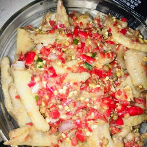 最后给鸡脚鸡尖做个马杀鸡,搞定,放冰箱。我是晚上弄得,早上发现有点淡盐,就又➕了点盐味,又马杀鸡了一次。晚上吃起很不错哦。比较满意这次の菜品