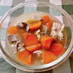 等炖汤时长还剩40分钟时,将胡萝卜加入电饭锅;等炖汤时长还剩5分钟时加入适量食盐和白胡椒粉调味,接下来再等5分钟,炖汤完成~