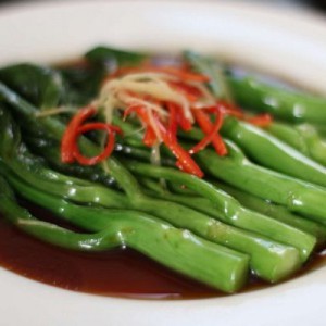停留30秒,让热油有一个渗透的过程。这时候这道白灼芥兰才算制作完成。