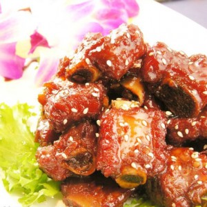 放入排骨,一直煸炒到排骨变色后,表面金黄微焦。