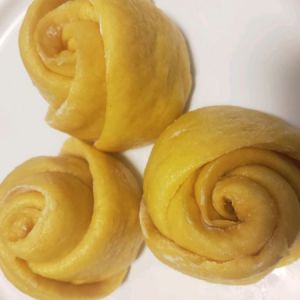 南瓜泥冷凉后加入面粉,酵母粉揉成面团,醒发至两倍大