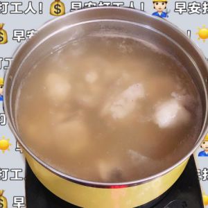 买根排骨洗干净,放入锅内倒入料酒先煮好排骨汤。